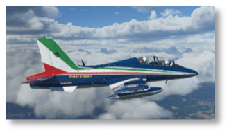 The Aermacchis are Italian-built military jet trainers and light attack aircraft. The versions in the sim come courtesy of publishers IndiaFoxtEcho (IFE) Visual Simulations. Both the MB-339A and the MB-339PAN together are available for $24. (Also available for purchase in the simulator’s marketplace, but I think it’s nice to purchase directly from the vendor.)